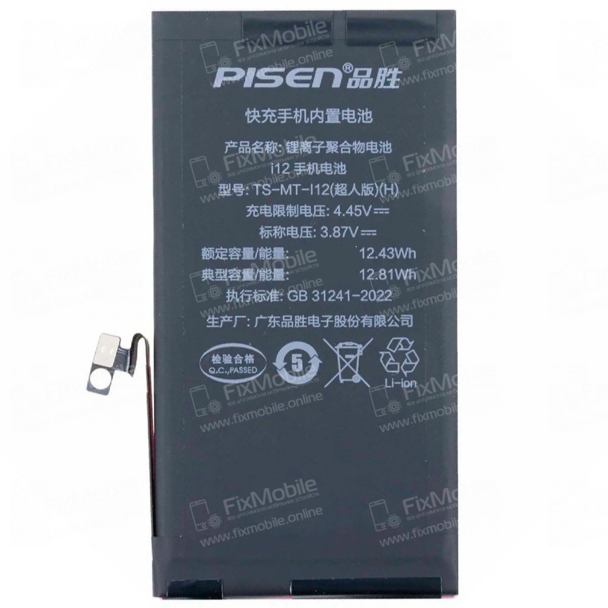 Аккумуляторная батарея Pisen для Apple iPhone 12