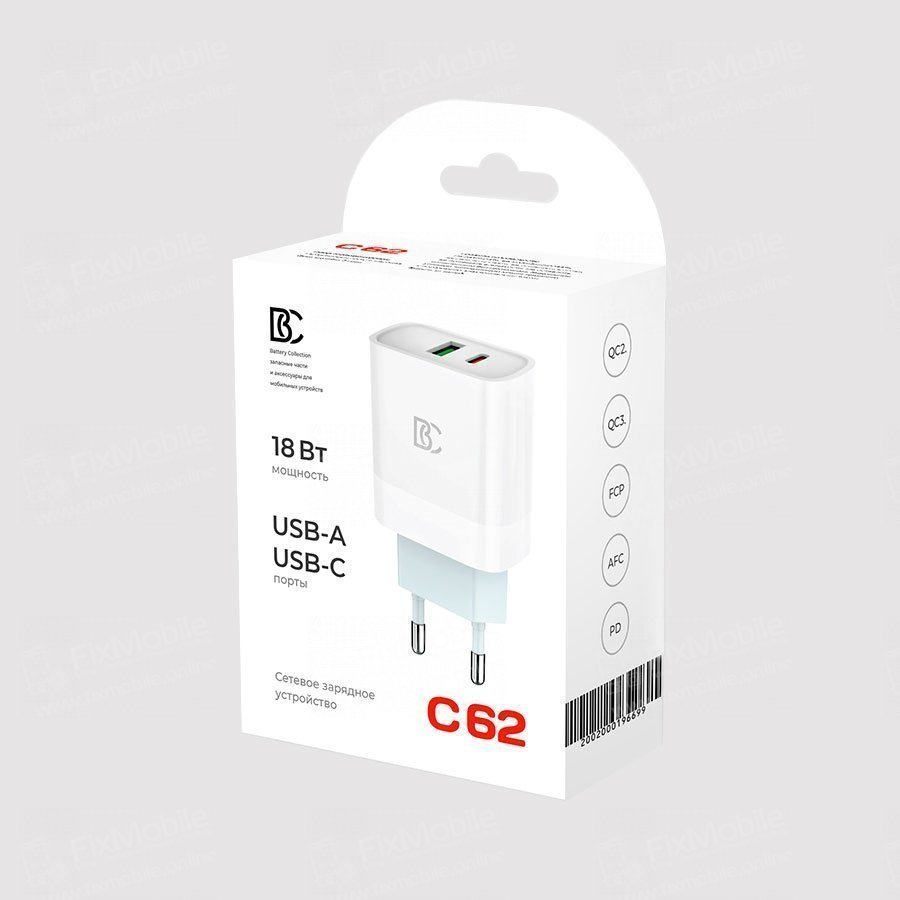 Сетевое зарядное устройство BC C62 USB/Type-C (белое)